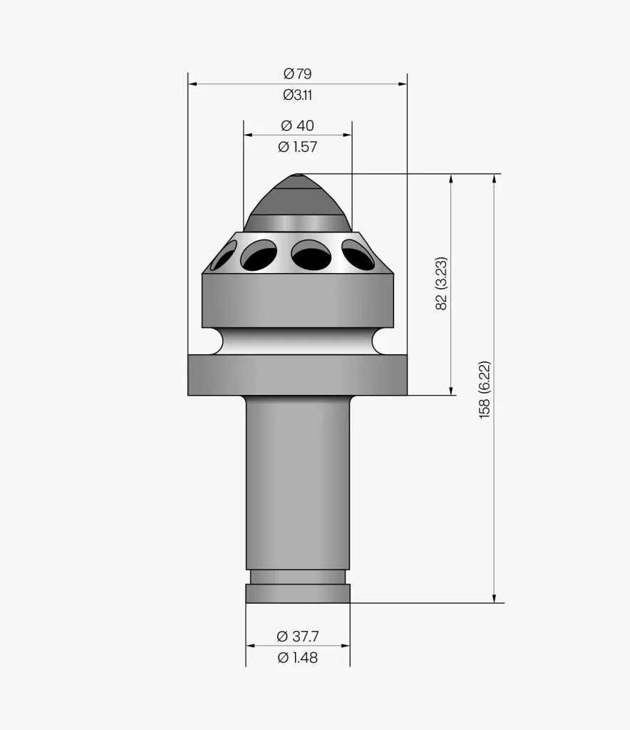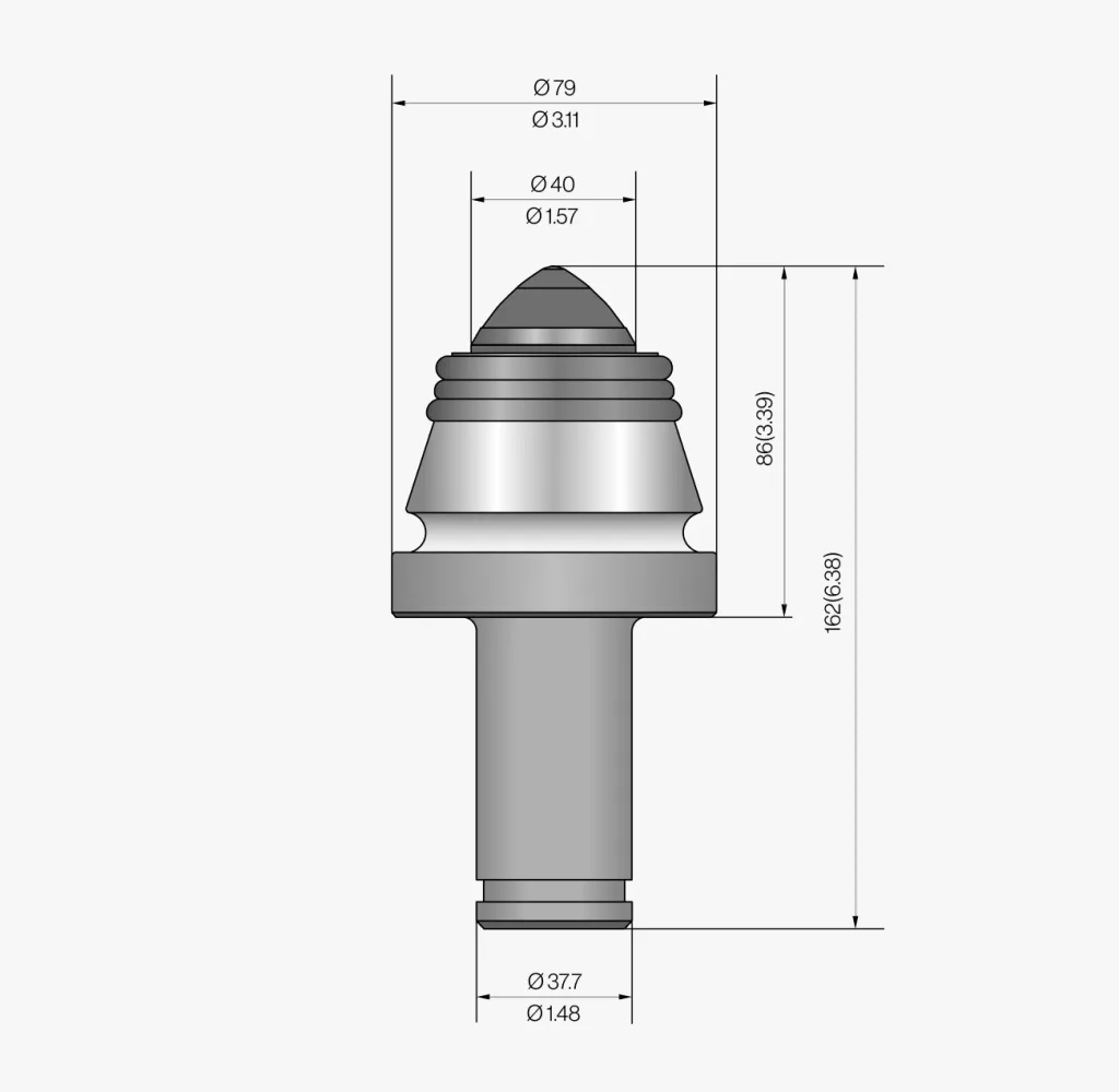 Heavy-duty pick for high-power shearers cutting in extremely hard or abrasive seams.